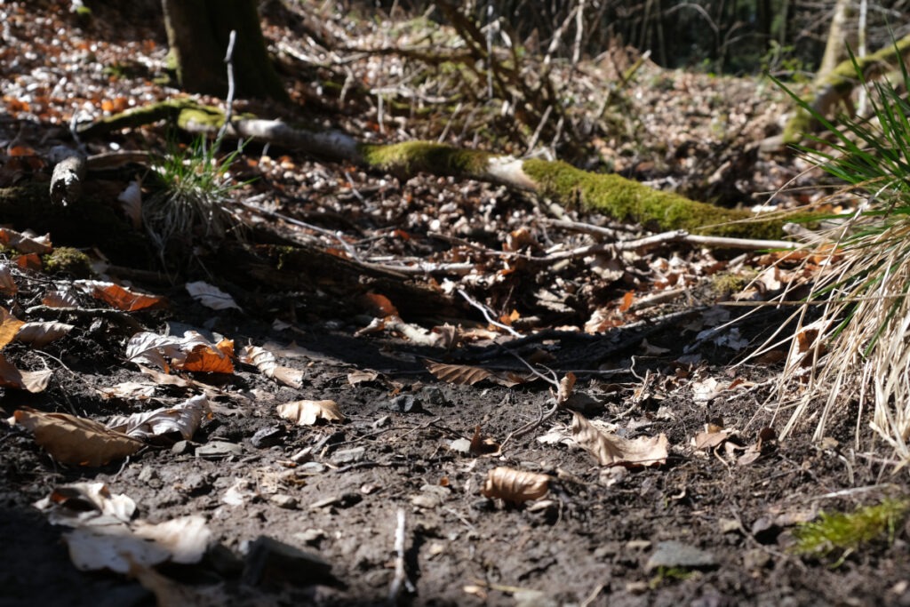 Diese Bilder zeigen die Folgen der aktuellen Trockenheit. Mein Schwiegervater gießt bereits die jungen Obstbäume auf unserer neuen Streuobstwiese, damit diese in der Blütezeit nicht vertrocknen. Der Boden und kleine quellengespeiste Bachläufe im Wald sind bereits trocken. Und besonders groß ist die Gefahr für all die neuen Waldbäume und -sträucher, die unsere Waldbauern im vergangenen Jahr gepflanzt haben. Fotos: Sina Löschke